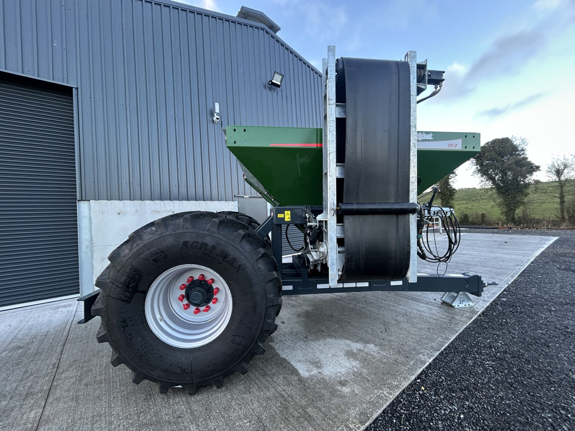 The 630mm belt is one of the largest on the market and can evenly dispense any type of stone/gravel.  The use of a hydraulic drive and manual flow control at the front of the machine allow for precise belt control enabling the operator to fine tune the flow of material to the forward speed.